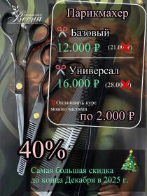 Сама БОЛЬШАЯ скидка 40% на парикмахерские курсы в 2025 г.